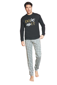 Lars Piżama Męska długi rękaw, długie spodnie Italian Fashion - druk grafitowy/grafitowy