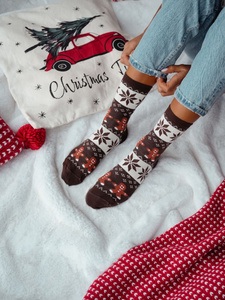 1283-036 Skarpety damskie Mała Reniferka Milena brązowy– świąteczne, kolorowe, bawełniane