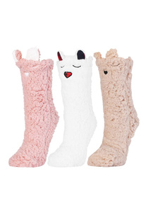 Skarpetki damskie Moraj CDC1600-001 biały różowy– puchate, z buźką i antypoślizgiem ABS