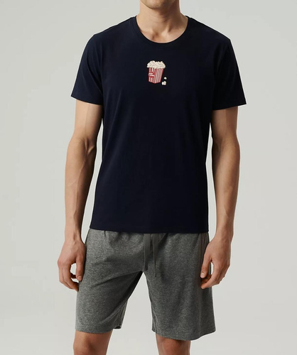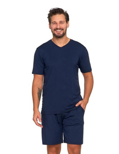 Ricardo Piżama Męska krótki rękaw, spodenki Italian Fashion - granatowy/druk
