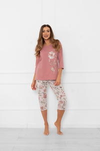 Piżama damska Akita – bawełna, rękaw 3/4 i spodnie 3/4, kwiatowy wzór Italian Fashion