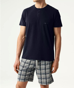 Flota Piżama Męska krótki rękaw, spodenki Italian Fashion - druk niebieski/granatowy