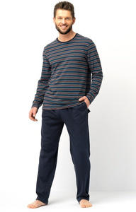 Doctor Nap 7304 – Piżama damska z bawełny z falowanym wykończeniem | 95% bawełna, polska produkcja - navy blue