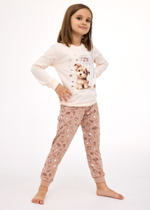 594/191, 592/191 Piżama dziewczęca Panther CORNETTE –beżowa, bawełna, długi rękaw, w ozdobnym pudełku