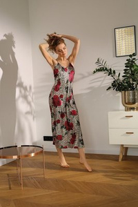 Flowers Halka satynowa koszulka damska DKaren - DK-HA 08 czarny