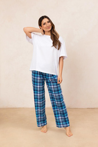 712 Piżama damska Regina niebieska – bawełna, koszulka w szpic, spodnie w kratkę