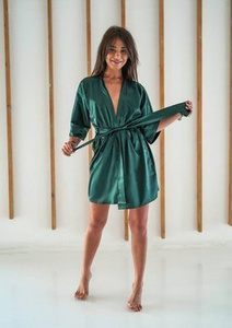 335 Szlafrok damski satynowy MIRACLE wiązany w pasie- liście