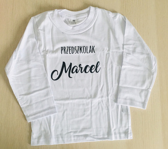 Koszulka długi rękaw "Przedszkolaka z imieniem- MARCEL" Moocha biały