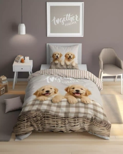 5553 A Fluo 95 Pościel świecąca w ciemności Pieski Together Forever | 100% bawełna | Dla dzieci Detexpol