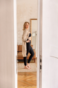 3411C/E Legginsy ciążowe prążkowane z wysokim stanem – komfort i styl w jednym - ecru