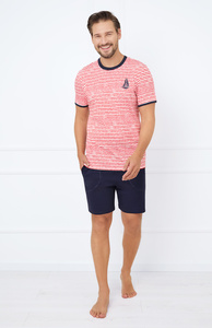 Flota Piżama Męska krótki rękaw, spodenki Italian Fashion - druk czerwony/granatowy