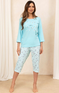 707 Piżama Regina bawełniana turkusowa – damska, rękaw 3/4, kwiatowy wzór