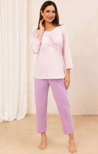 706 Piżama damska bawełniana różowa – rękaw 3/4, spodnie 7/8, ozdobny nadruk