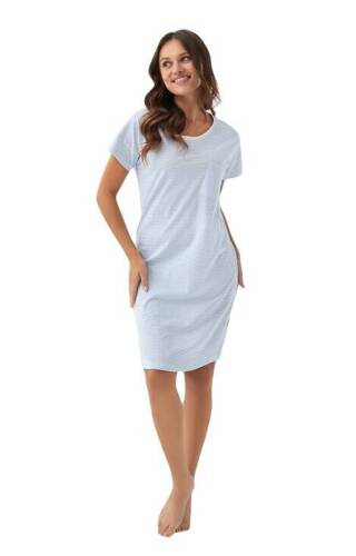261 Koszula nocna Luna niebieski – bawełna, rękaw 7/8, wygodna i kobieca