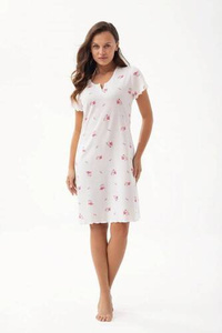 338 Koszula nocna Luna różowa – bawełniana w roślinny wzór, długa z guzikami