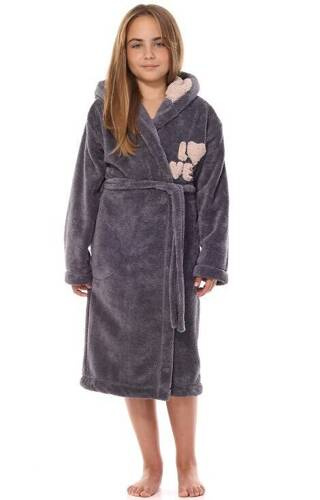 2559 Liv Szlafrok damski L&L z kapturem szary – krótki i wygodny
