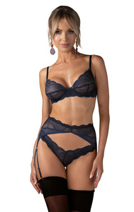 Komplet Euridia 3-częściowy Obsessive czarny– biustonosz, stringi i pas do pończoch