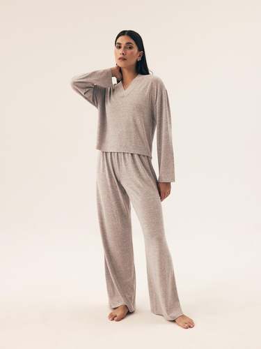 Piżama damska 43698 Delanie Henderson kremowa – bawełna, długi rękaw, elegancki fason