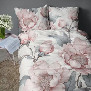 5223 B Pościel satynowa gałązki w odcieniach różu Detexpol szary