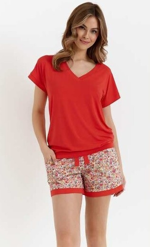 489 Piżama damska Cana lazurowa – bawełniana, koszulka + spodnie 3/4 z kieszeniami