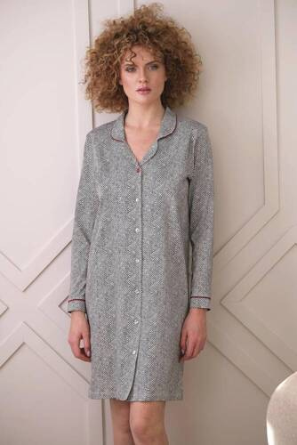 493 Koszula nocna damska Cana grafitowa – bawełna interlock, serduszka, długi rękaw