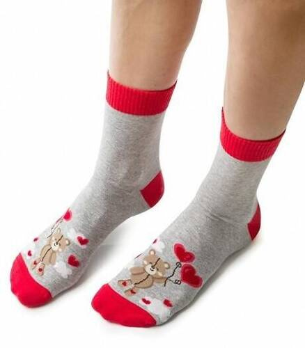 ART.136 Skarpety świąteczne damskie Steven melanż szary 141– bawełniane, ciepłe, zimowy wzór