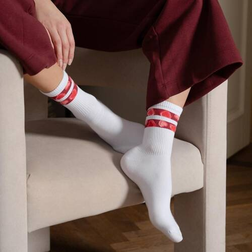 ART.136 Skarpety świąteczne damskie Steven czerwony 118 – bawełniane, ciepłe, zimowy wzór