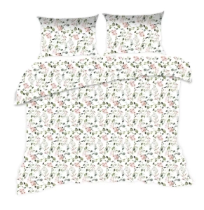1610N Pościel bawełniana Classic E24 Karo kwiaty biała pudrowa– 100% bawełna, trwała, kolorowa, komplet 2-częściowy