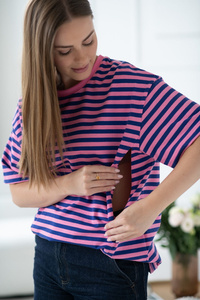 Mamahood T-shirt ciążowy i do karmienia Milk&Love różowo-niebieskie paski – wygodny i stylowy