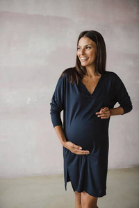 Moon bambusowa koszula nocna ciążowa i do karmienia długi rękaw Milk&Love butelkowa zieleń