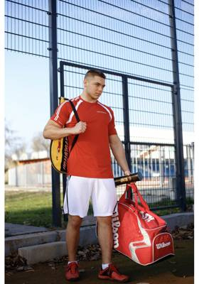 86094 Dwukolorowy T-shirt męski Power Back sportowy James Bradley czarny-biały