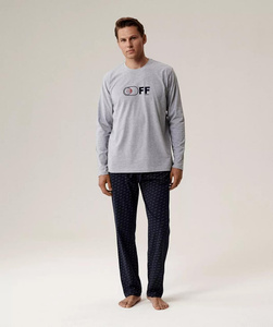 Piżama męska NMP-390 Atlantic szaro granatowa– bawełna, długi rękaw, wygodna i ciepła na chłodniejsze noce