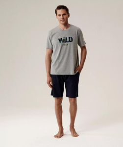 Piżama męska NMP-396 –szary granatowyi bawełna, krótki rękaw, lekka i wygodna na lato