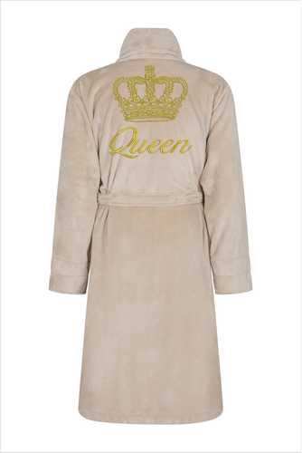 Queen + Korona Szlafrok damski polarowy ByShelly - beżowy/złoty