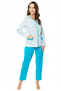 86566 Anna Piżama damska rozpinana Mewa - biały-turkus