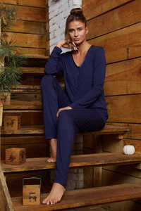 Song Piżama Damska długi rękaw, długie spodnie Italian Fashion - granatowy