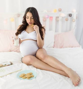 131 Sukienka ciążowa z opaską laktacyjną MIRACLE cappucino