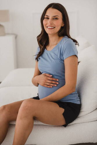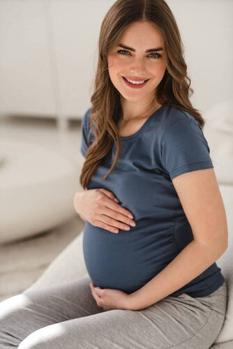 Moon bambusowa bluzka od piżamy ciążowej do karmienia krótki rękaw Milk&Love ciemny błękit