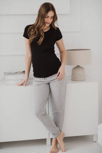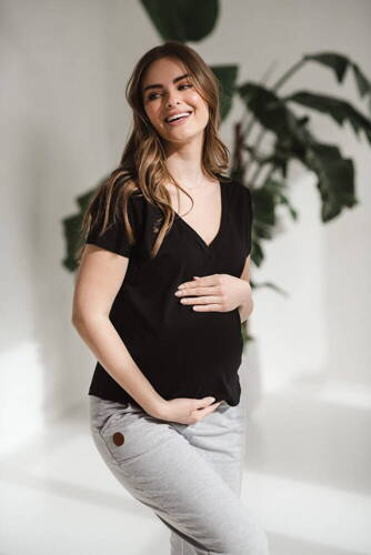 Mamafullness Bluzka ciążowa do karmienia Milk&Love czarna– wiskoza, rękaw 3/4, oversize