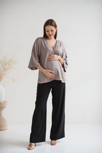 Mamafullness Bluzka ciążowa do karmienia Milk&Love beżowa– wiskoza, rękaw 3/4, oversize