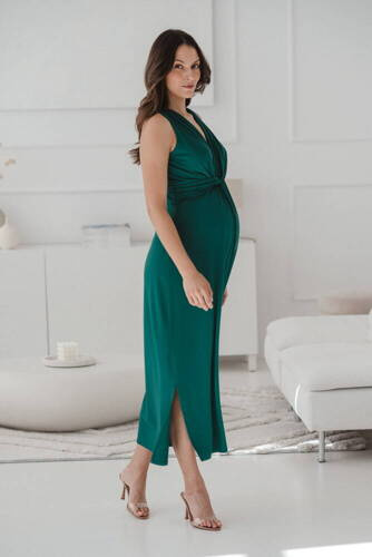 Lovely Dress Midi Milk&Love w zielone kwiaty– sukienka ciążowa i do karmienia z lnem, elegancki krój z zamkami do karmienia
