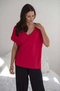 Moon bambusowa bluzka od piżamy ciążowej do karmienia krótki rękaw Milk&Love malinowy