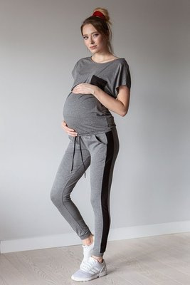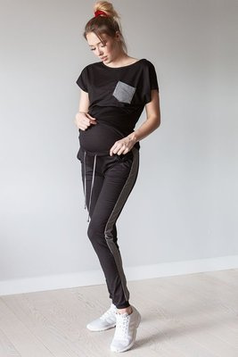 3411C/CZ Legginsy ciążowe prążkowane z wysokim stanem – komfort i styl w jednym - czarny