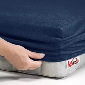Pure prześcieradło satynowe z gumką jednobarwne Detexpol denim granatowy