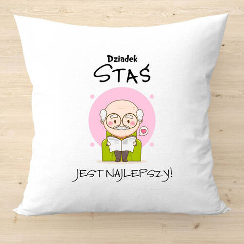 "Dziadek jest najlepszy z imieniem" Poduszka z nadrukiem na Dzień Dziadka Moocha