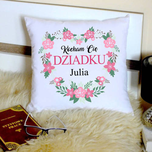"Kocham Cię BABCIU z Twoim imieniem" Poduszka z nadrukiem na Dzień Dziadka Moocha