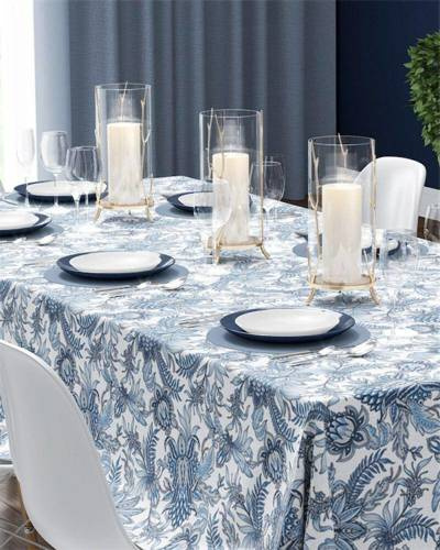 Simona obrus liście z błyszczącym nadrukiem Eurofirany srebrny