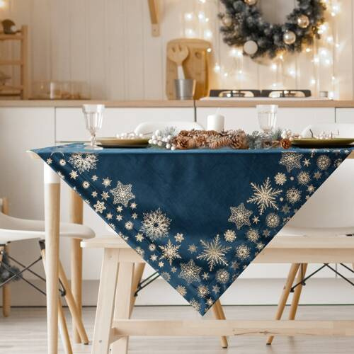4051 Obrus świąteczny gobelinowy Śnieżny biały szary domek Eurofirany szary