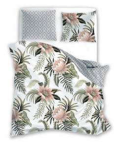 1689E Pościel bawełniana kremowa kwiaty liście szare różowe 1141N Karo