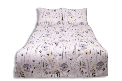 5634 B Pościel flanelowa Pastel Flowers Detexpol biała w polne kwiaty fioletowo-żółte– ciepła, miękka i elegancka